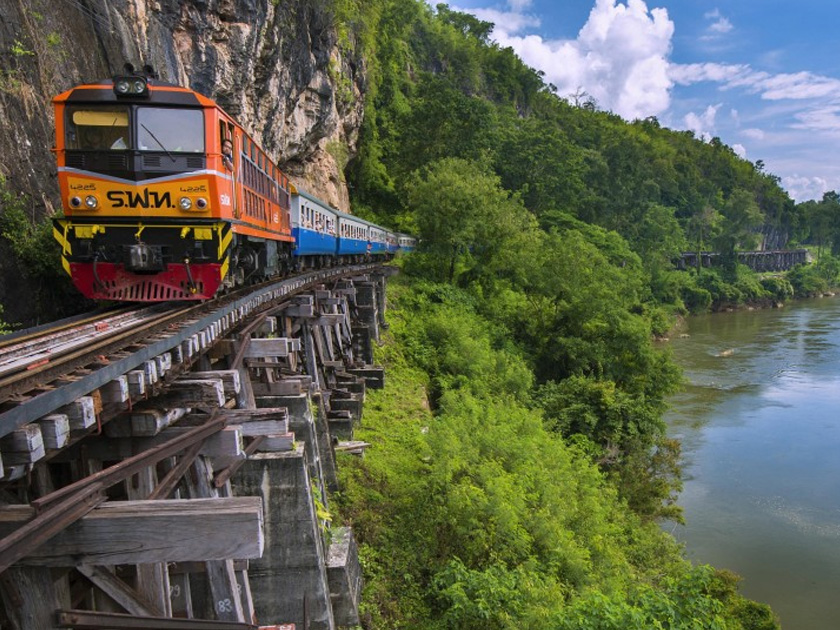 Visit the scenic wooden railway section built along the cliffside overlooking the River Kwai.